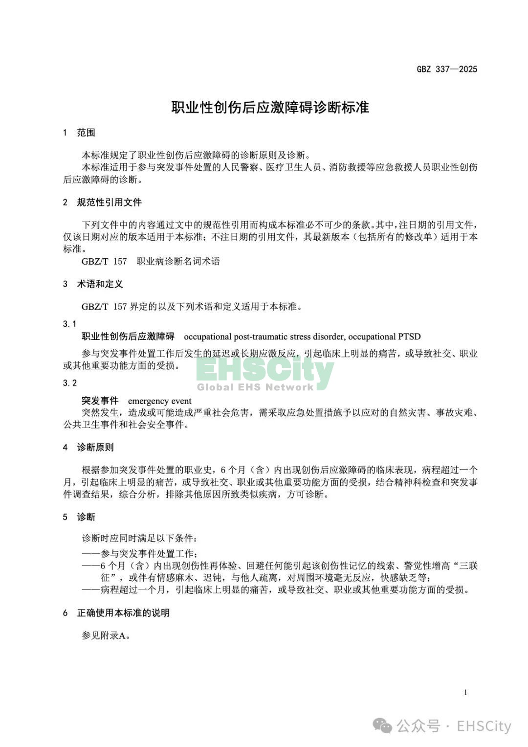 GBZ337—2025 職業(yè)性創(chuàng)傷后應(yīng)激障礙診斷標(biāo)準(zhǔn) 自2025-08-01實施