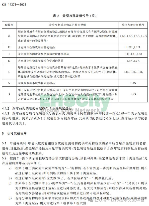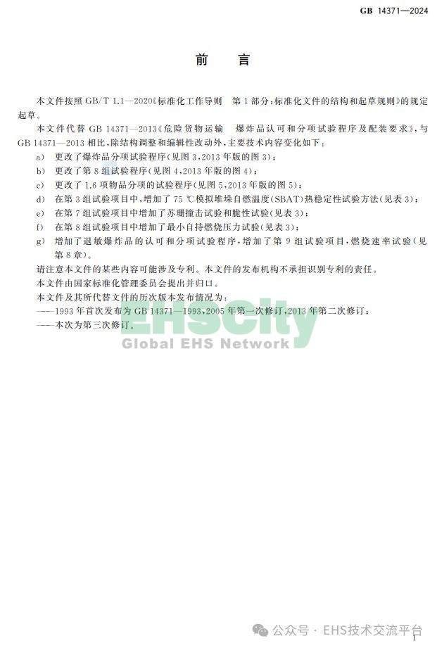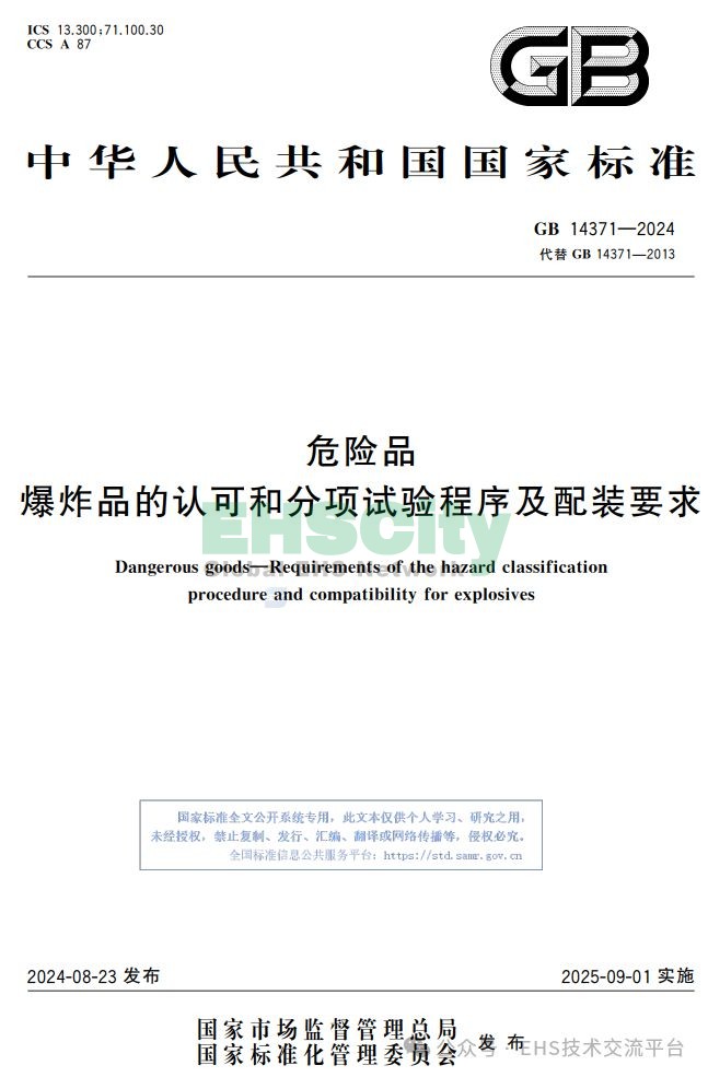 GB 14371-2024 危險(xiǎn)品 爆炸品的認(rèn)可和分項(xiàng)試驗(yàn)程序及配裝要求