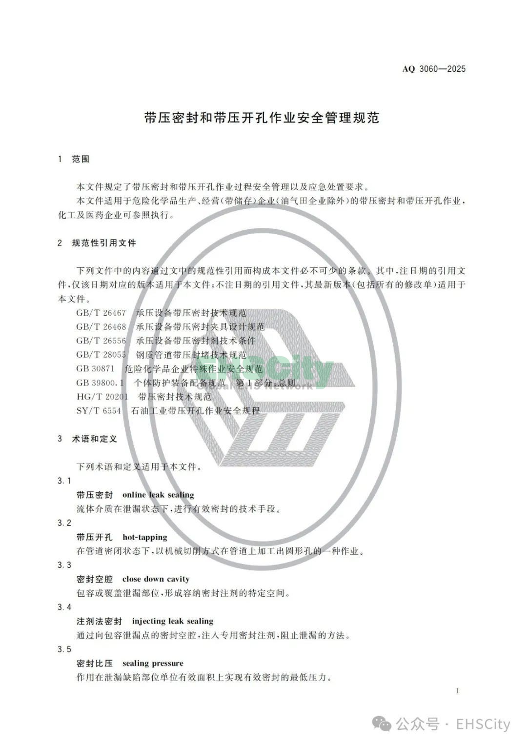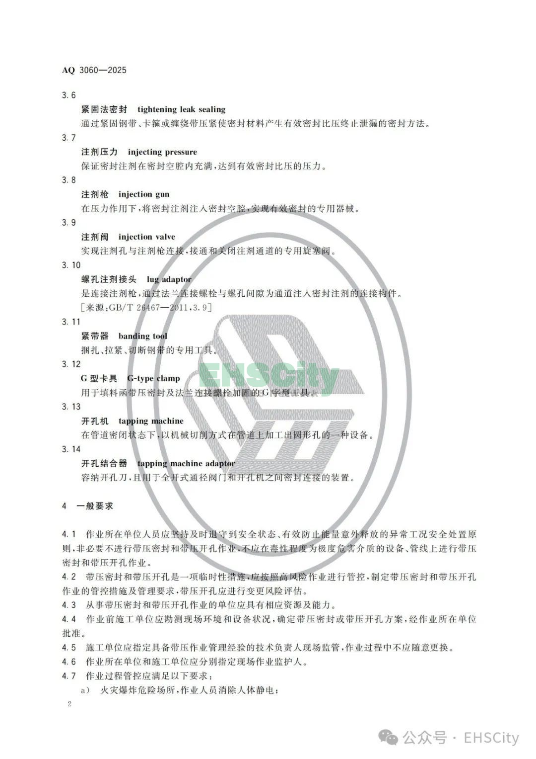 AQ 3060-2025 帶壓密封和帶壓開(kāi)孔作業(yè)安全管理規(guī)范 自2025-10-18實(shí)施