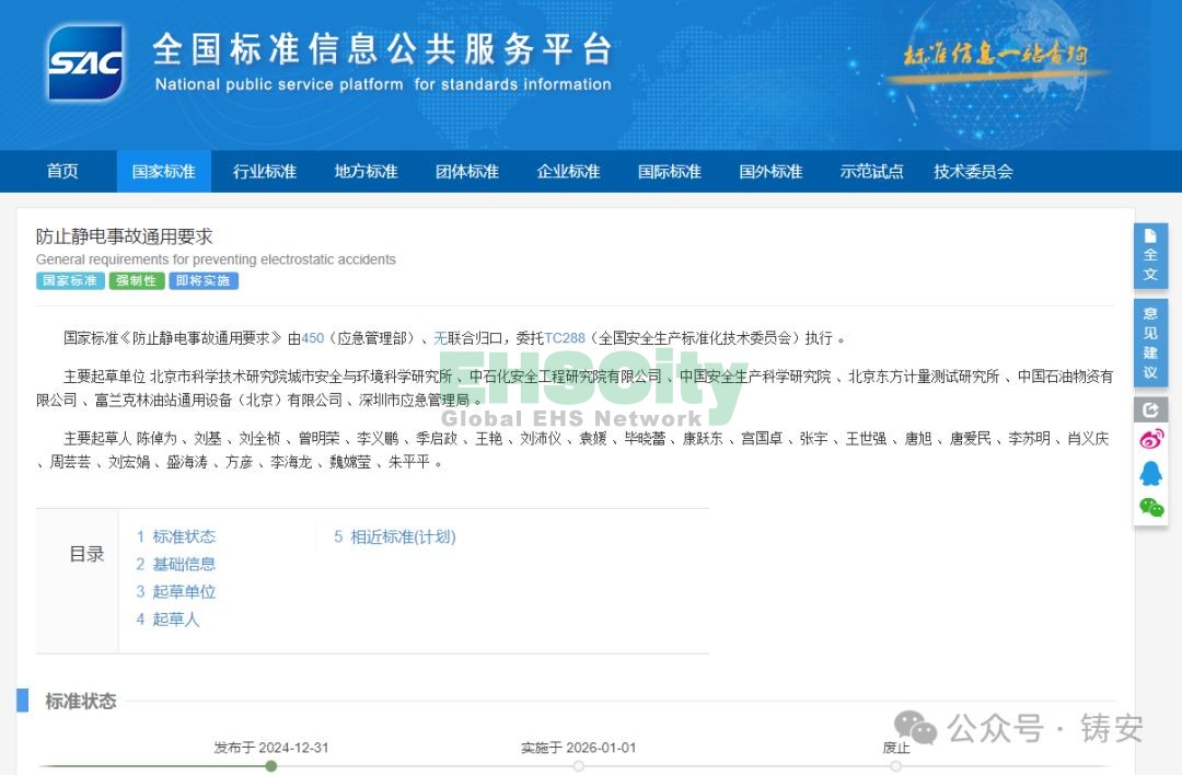 該標(biāo)準(zhǔn)將代替GB12158-2006防止靜電事故通用導(dǎo)則及GB13348-2009液體石油產(chǎn)品靜電安全規(guī)程。