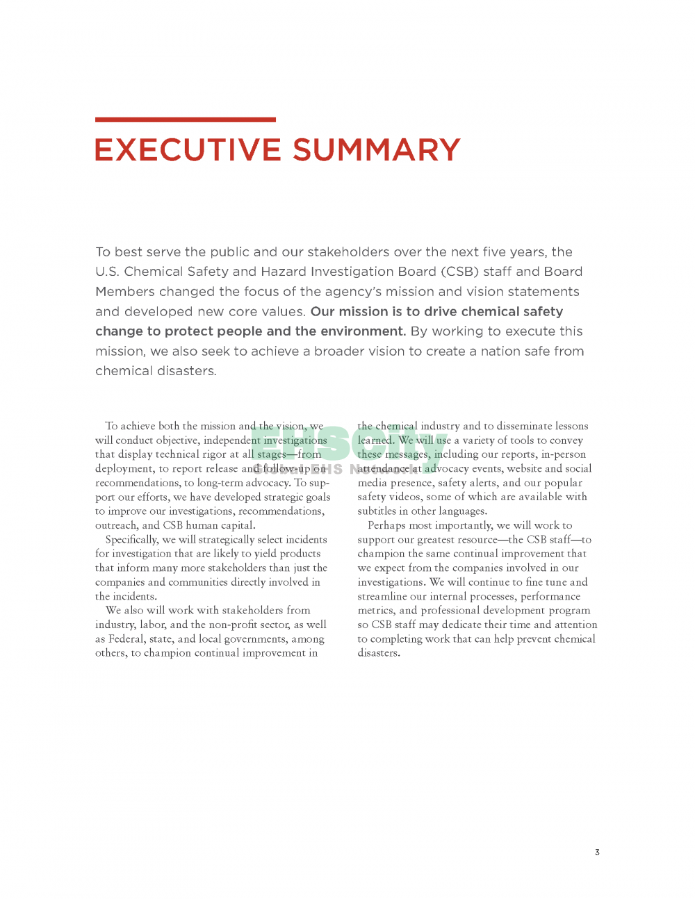 U.S. Chemical Safety Board 2017 to 2021 Strategic Plan