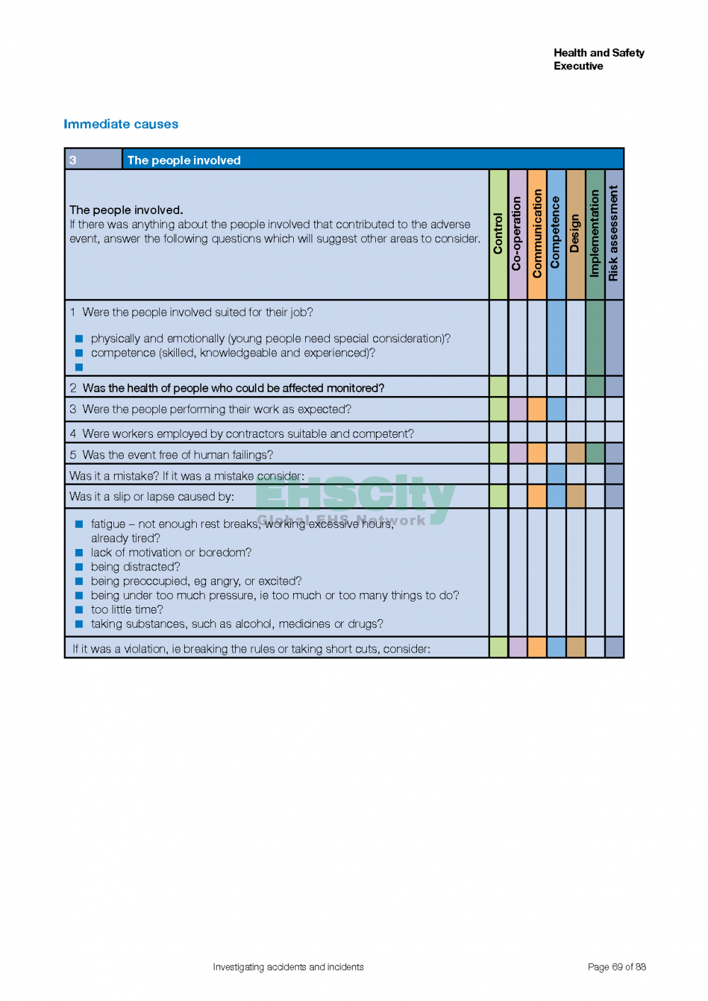 Fundamental to this process is the identification of basic, as well as immediate, causes. To facilitate this, the five components of this Loss Causation Model can be very helpful: