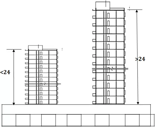 平臺(tái)上由建筑高度超過(guò)24米(超過(guò)10層的住宅)和未超過(guò)24米的多個(gè)建筑相連組成的建筑群體,是否應(yīng)全部理解為高層建筑,還是可以按具體情況分別獨(dú)立區(qū)分為高層建筑和多層建筑?
