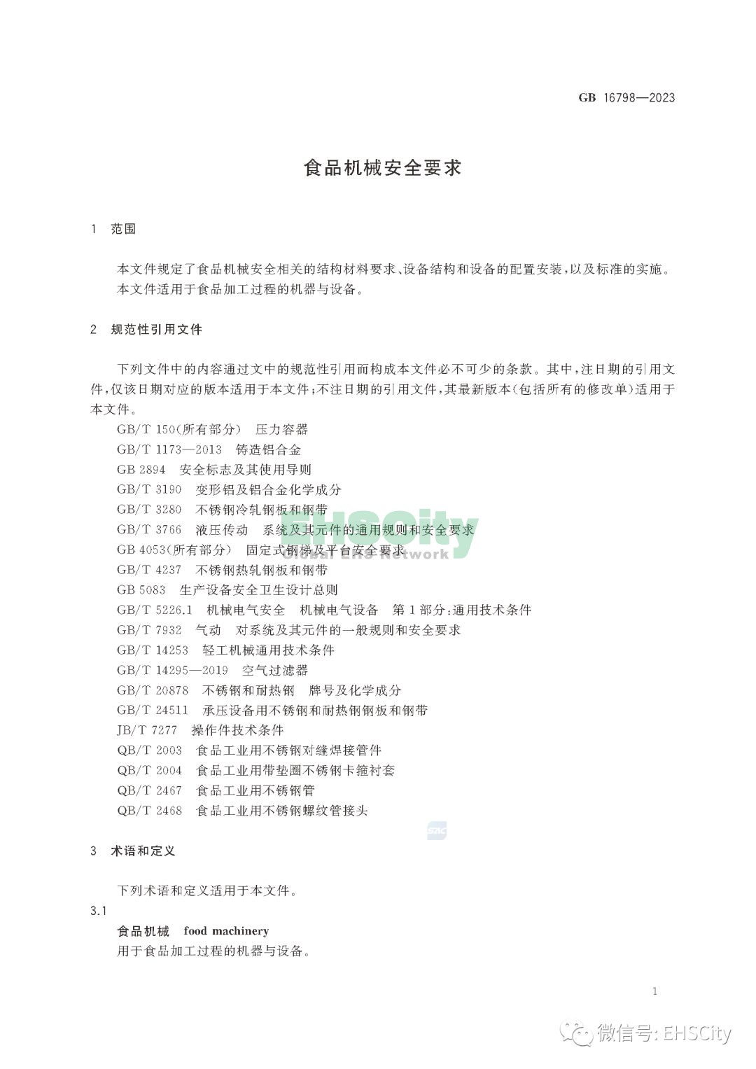 GB 16798-2023 食品機械安全要求 2024-04-01實施
