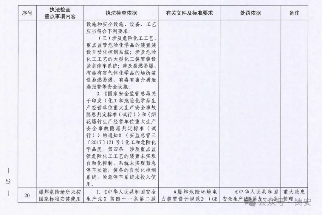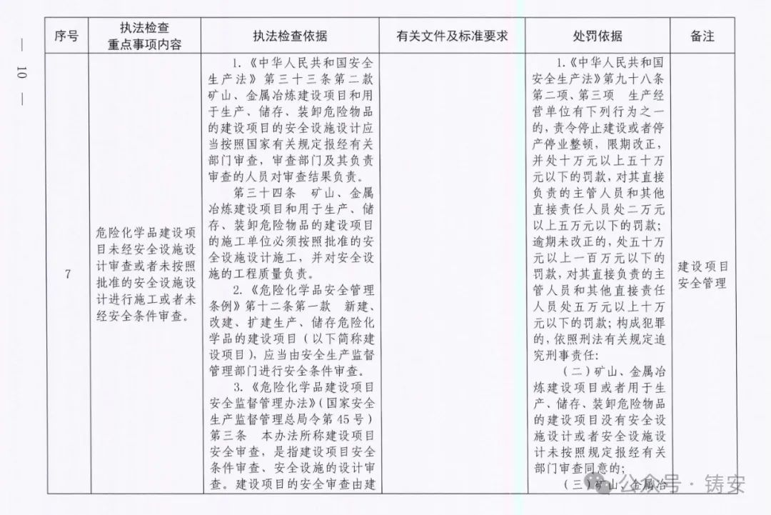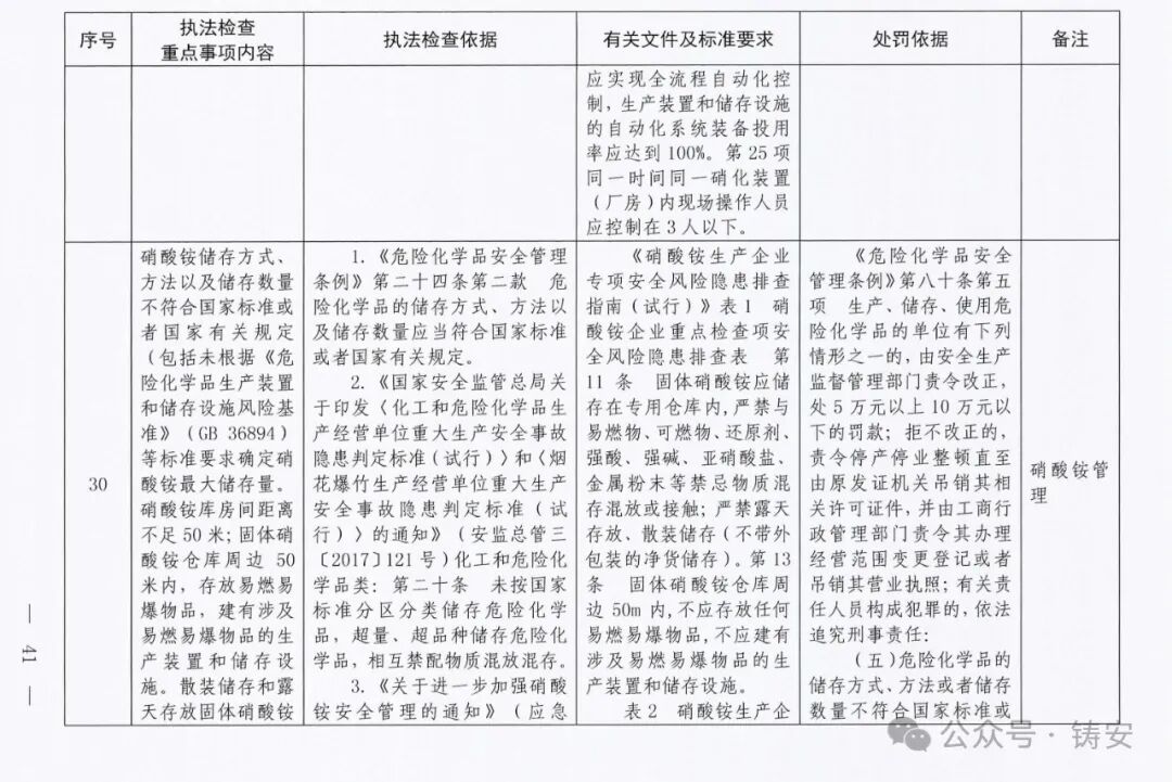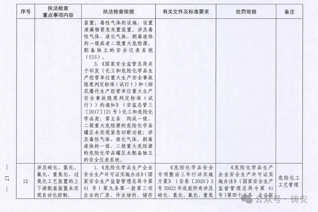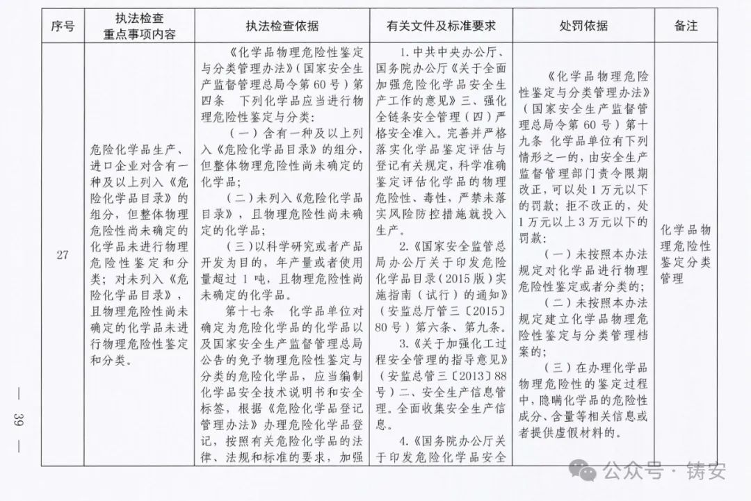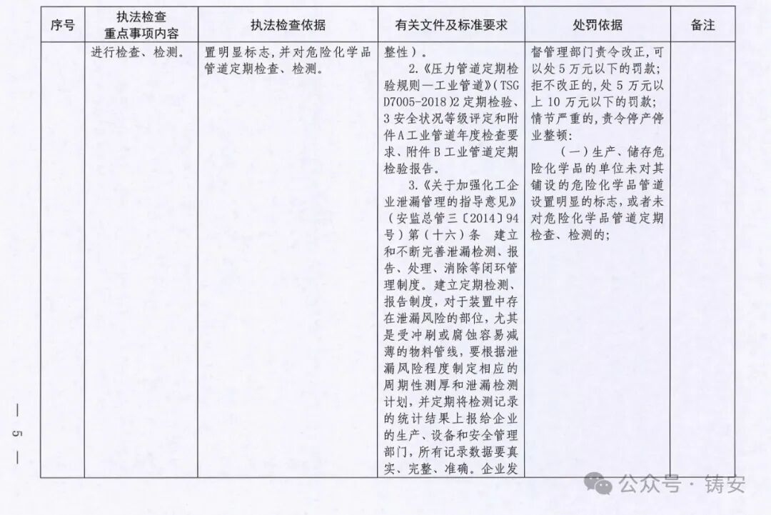 黑應急辦發(fā)〔2024〕32號各市(地)應急管理局:現(xiàn)將《應急管理部辦公廳關于印發(fā)<2024年危險化學品企業(yè)安全生產(chǎn)執(zhí)法檢查重點事項指導目錄>的通知(應急廳〔2024〕11號)》(以下簡稱《指導目錄》)轉(zhuǎn)發(fā)給你們,并提出如下要求,請一并貫徹執(zhí)行。一、提高認識,抓好落實?!吨笇夸洝穱@重大安全風險防控和重大安全隱患排查治理,聚焦關鍵人(企業(yè)主要負責人)、關鍵企業(yè)(涉及重點監(jiān)管危險化工工藝、重點監(jiān)管危險化學品、重大危險源企業(yè))和關鍵環(huán)節(jié)(特殊作業(yè)、雙重預防、報警聯(lián)鎖等),明確了32項重點執(zhí)法檢查內(nèi)容,包括危險化學品安全執(zhí)法檢查重點事項內(nèi)容、執(zhí)法檢查依據(jù)、有關規(guī)范性文件和標準要求以及處罰依據(jù),內(nèi)容明晰,具有很強的指導性。各地要及時傳達到相關企業(yè),并在監(jiān)管執(zhí)法過程中嚴格遵照執(zhí)行。二、結(jié)合實際,提質(zhì)增效。各地要把《指導目錄》作為嚴格公正規(guī)范執(zhí)法的一項重要舉措,對照執(zhí)法檢查重點事項嚴格精準執(zhí)法,特別是要對涉及“兩重點一重大”(重點監(jiān)管危險化學品、重點監(jiān)管危險化工工藝、重大危險源)的危險化學品生產(chǎn)經(jīng)營企業(yè)開展專項執(zhí)法檢查,樹牢“隱患就是事故”風險意識,嚴格安全風險管控和隱患排查治理,嚴防企業(yè)“帶病”運行,進一步推動化工和危險化學品安全生產(chǎn)治本攻堅三年行動各項任務落地生效。三、嚴格執(zhí)法,落實責任。各地要認真學習貫徹習近平總書記關于安全生產(chǎn)的重要指示精神,堅持人民至上、生命至上,針對安全執(zhí)法檢查工作中存在的聚焦重大事故隱患力度不夠、檢查不深入、監(jiān)管執(zhí)法“寬松軟虛”等問題,不斷提升執(zhí)法檢查工作的精準化、規(guī)范化和信息化水平,依法嚴厲查處非法違法行為,強化行刑銜接,全面提高對非法違法企業(yè)的執(zhí)法震懾力。四、加大培訓,精準指導。各地要按照有關法律法規(guī)規(guī)定,針對執(zhí)法檢查重點事項,結(jié)合本地區(qū)實際和年度安全生產(chǎn)監(jiān)督檢查計劃,強化執(zhí)法效能。要適時通報執(zhí)法檢查情況,剖析發(fā)現(xiàn)的重點問題和共性問題,嚴格落實問題督辦整改制度,推動從根本上消除事故隱患、從根本上解決問題。要通過嚴格執(zhí)法引導推動企業(yè)主動落實安全生產(chǎn)主體責任,有效防范化解重大安全風險,不斷提升本質(zhì)安全水平。聯(lián)系人:馬冀、馬冰心,聯(lián)系電話:0451-87019598。附件:應急管理部辦公廳關于印發(fā)《2024年危險化學品企業(yè)安全生產(chǎn)執(zhí)法檢查重點事項指導目錄》的通知(應急廳〔2024〕11號)黑龍江省應急管理廳2024年3月14日