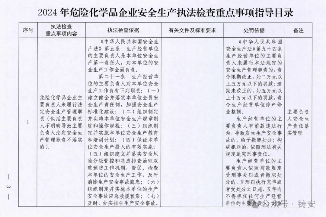 應急部關于印發(fā)<2024年危險化學品企業(yè)安全生產(chǎn)執(zhí)法檢查重點事項指導目錄>的通知