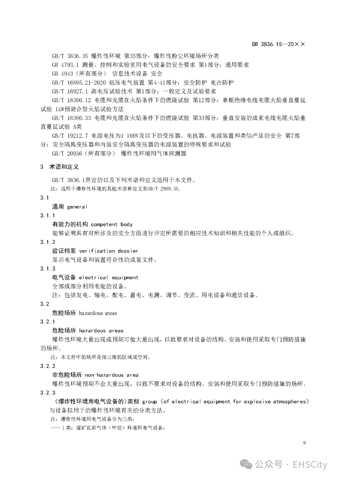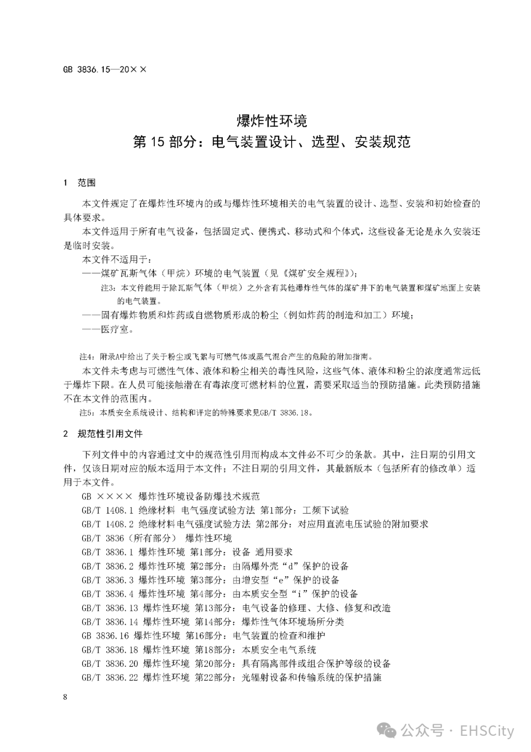 GB3836.15-20××《爆炸性環(huán)境第15 部分:電氣裝置設(shè)計(jì)、選型、安裝規(guī)范》征求